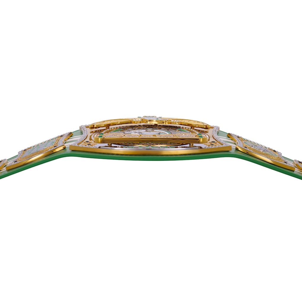 Designed with the signature green Cenation theme, tribute side plates, and farewell center plate artwork, this collector belt represents dedication, hustle, loyalty, and respect.